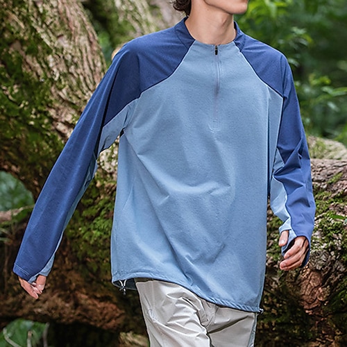 Per uomo Camicia da escursionismo Maglietta con cerniera a un quarto Maglietta con protezione UV Manica Lunga Top Esterno Protezione Solare UV Asciugatura Rapida Poliestere Patchwork Bianco Blu Grigio