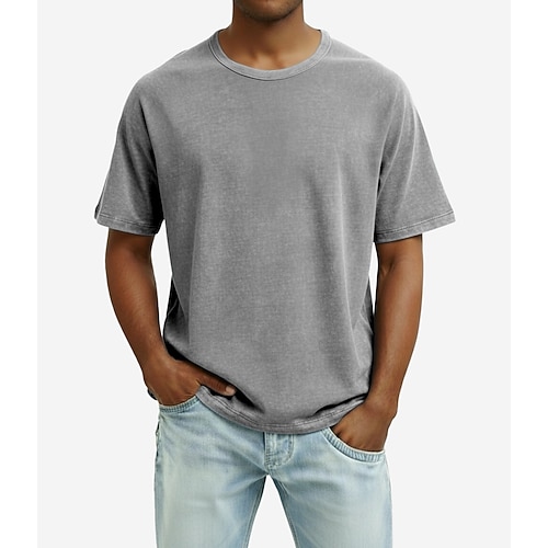 Herren T Shirt Kurzarm Rundhalsausschnitt Sommer Frühling Ganzjahres Einfarbig Vintage Lässig Lustig Vintage-Stil Gewaschen Lässig Täglich Straße Blau Grau Purpur Top T-Shirt für Herren
