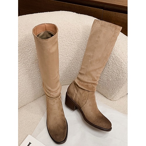 stivali da donna in pelle scamosciata a metà polpaccio con tacco spesso - classico design slip-on per l'autunno moda invernale