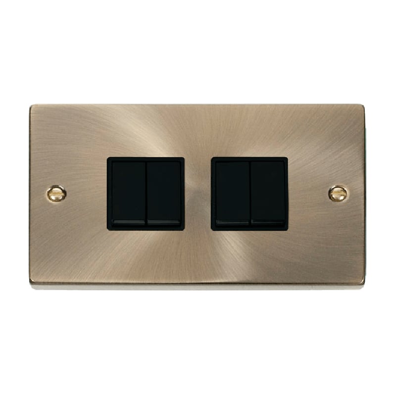 Click Deco 4 Gang 2 Way 10AX Switch Antique Brass Black Inserts