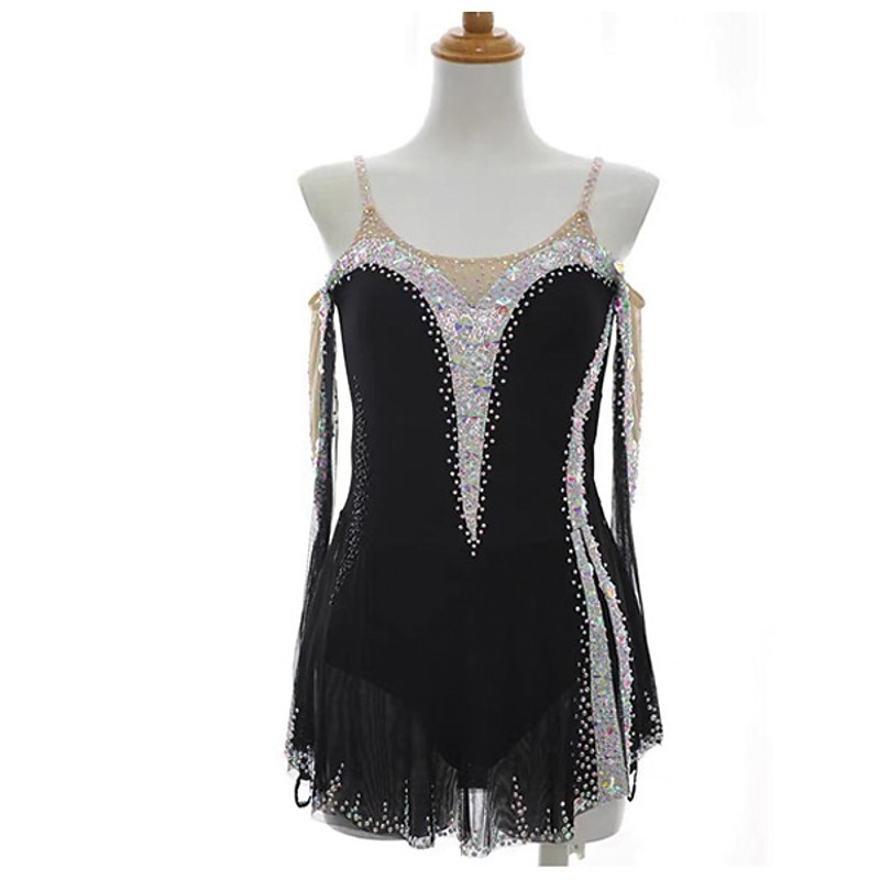 Eiskunstlaufkleid Damen Mädchen Eislaufen Kleid Schwarz Patchwork Daumenloch Netzstoff Spandex Dehnbar Training Übung Professionell Eiskunstlaufkleidung Thermowarm Kristall / Strass Ärmellos