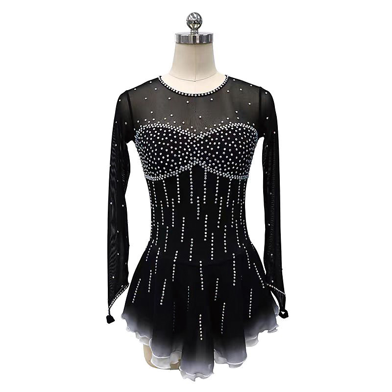 Eiskunstlaufkleid Damen Mädchen Eislaufen Kleid Schwarz Daumenloch Halo-Färbung Hohe Elastizität Professionell Wettbewerb Eiskunstlaufkleidung Thermowarm Kristall / Strass Langarm Eislaufen