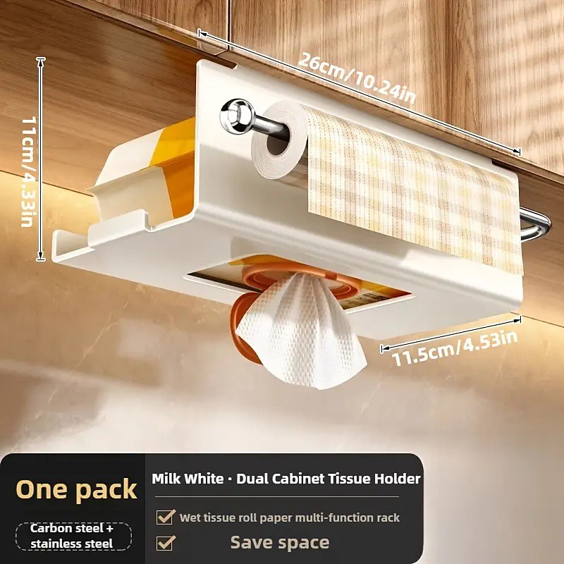 Wall-Mounted Cabinet Paper Towel Holder Under Cabinet Storage Box with Space-Saving Design Kitchen Storage Rack for Plastic Wrap and Dishcloths Modern Kitchen Countertop or Cabinet Organizer