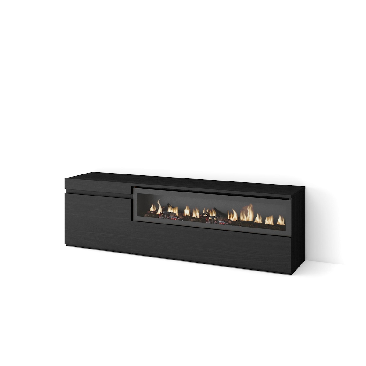 SKRAUT HOME Wohnzimmer-TV-Schrank, Viel Stauraum, 150x35x57cm, Für TV-Geräte bis 65“, Elektrischer Kamin, Industriedesign, Moderner Stil, Schwarz und weiß - 54_14
