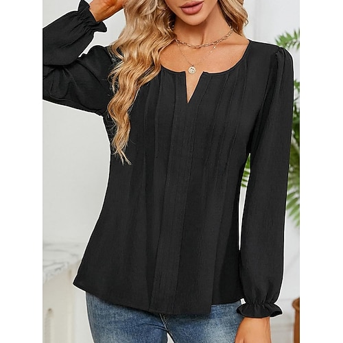 Per donna Blusa Tinta unica Quotidiano Elegante Casual Manica Lunga Scollo a V Top Regolari Quotidiano Arricciato Nero Bianco Rosa Vino Albicocca Primavera Autunno