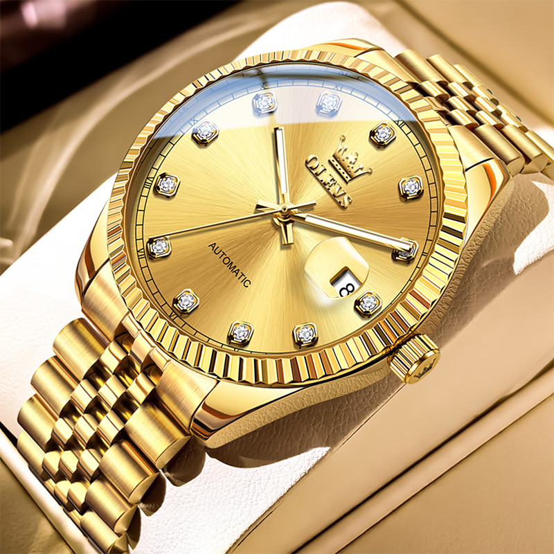 OLEVS Men Mechanical Watch Minimalist Fashion Business Wristwatch Automatic Self-winding Luminous Calendar Waterproof Steel Watch