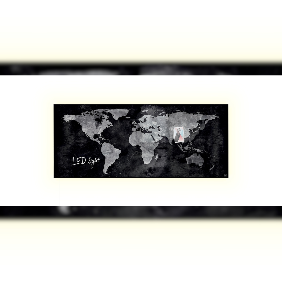Sigel GL410 Glas-Magnettafel / Magnetboard Artverum, mit LED-Beleuchtung, 55x130 cm, Design World-Map