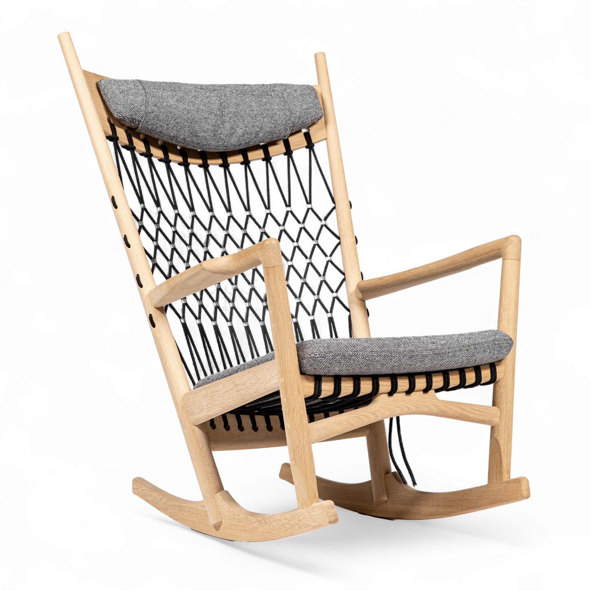 PP Möbler - PP124 Rocking Chair - Svart flagglina/ Ek såpad/ Kvadrat/Hallingdal 65-0166/ Clips: Steel - Fåtöljer - Hans J. Wegner - Grå - Trä