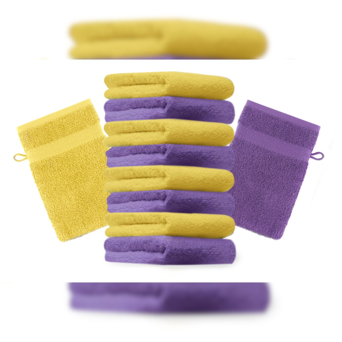 Betz 10 Stück Waschhandschuhe PREMIUM 100% Baumwolle Waschlappen Set 16x21 cm Farbe lila und gelb