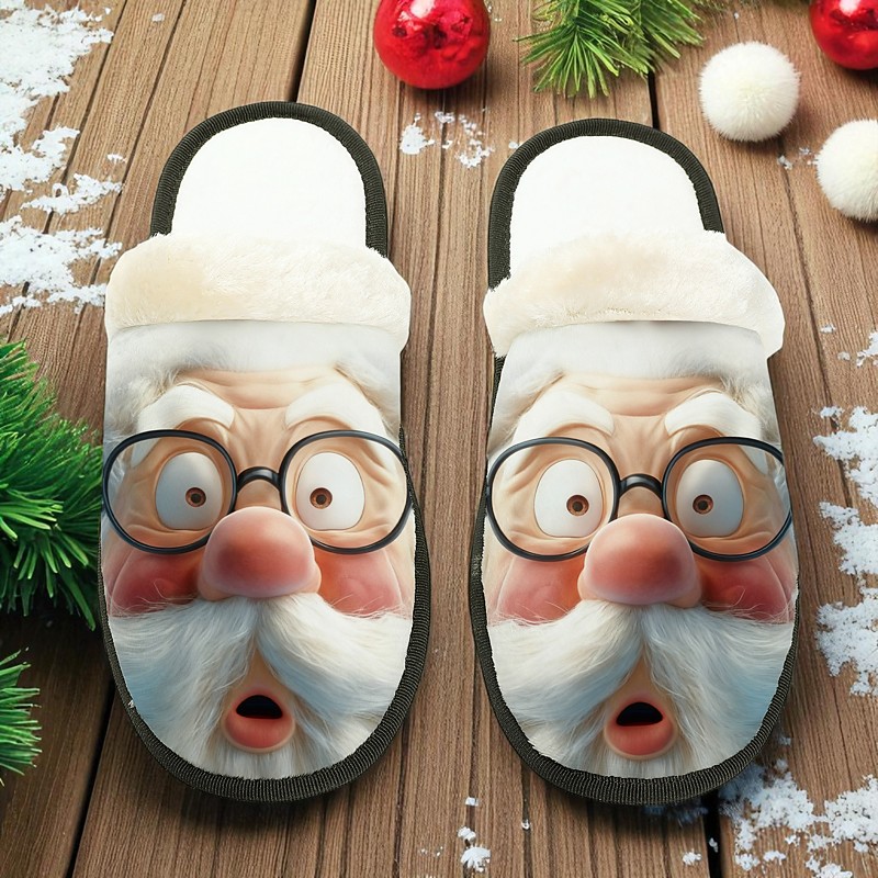 Men's Funny Christmas Slippers - Cute Rabbit Printed Warm Plush Slippers for Christmas Eve, Relaxing at Home and Gift Giving