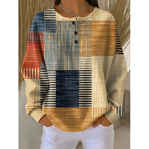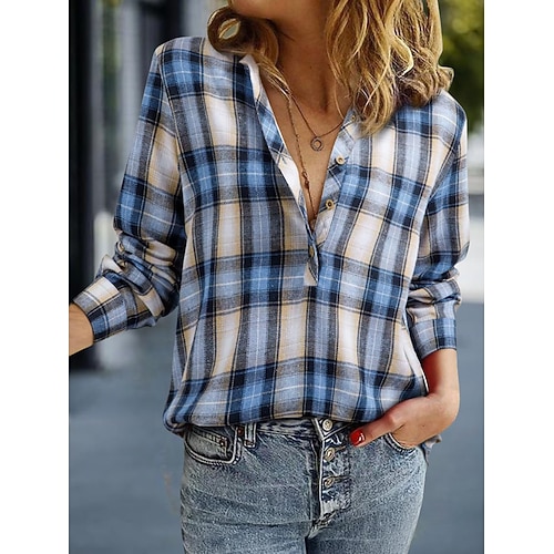 Per donna Blusa Grafico Plaid Elegante Vintage Essenziale Manica Lunga Colletto a Camicia Top Regolari Quotidiano Lavoro Blu Nero Bianco Giallo Rosso Estate Primavera Autunno Inverno