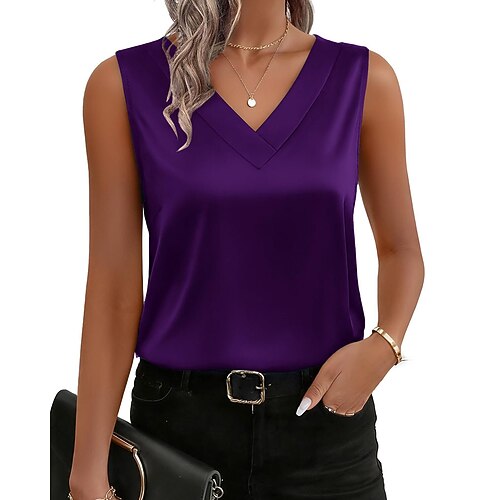 Per donna Blusa Tinta unica Elegante Quotidiano Signore Manica Corta Scollo a V Top Regolari Lavoro Quotidiano Ferie Arricciato Lake Green Nero Bianco Rosa Blu marino Estate Primavera Autunno