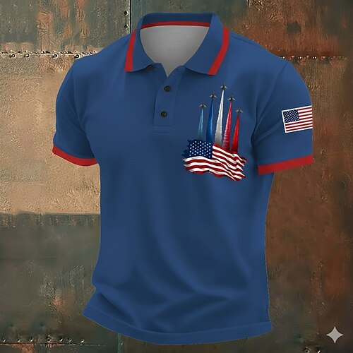 Giorno dell'Indipendenza Americana Per uomo Bandiera Americana Polo Manica Corta Magliette polo Camicie con Colletto Casual All'aperto Abbigliamento quotidiano Stampa 3D Estate Bianco Blu Blu scuro
