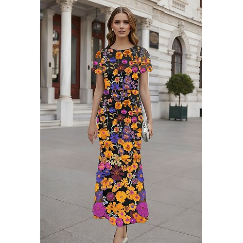 Vestito da festa a lunghezza caviglia in stile tubino abito da cocktail abito per invitata a matrimonio abito per madre della sposa maniche corte scollo rotondo elegante vintage festa spandex con