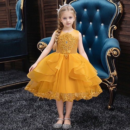 Blumenmädchenkleid Mädchen Formelle Kleidung Hochzeitskleidung Party Hochzeit Formell Formell Kleid für die Erstkommunion Patchwork Netz Einfarbig Ärmellos Rundhalsausschnitt Weinrot Champagner Ab 4