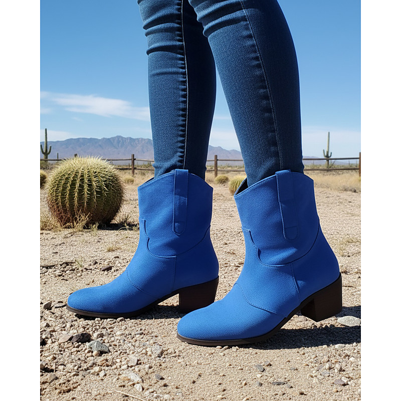Women's Brown Faux Suede Western Ankle Boots – Vintage-Style Low Heel Cowboy Boots for Casual Outfits