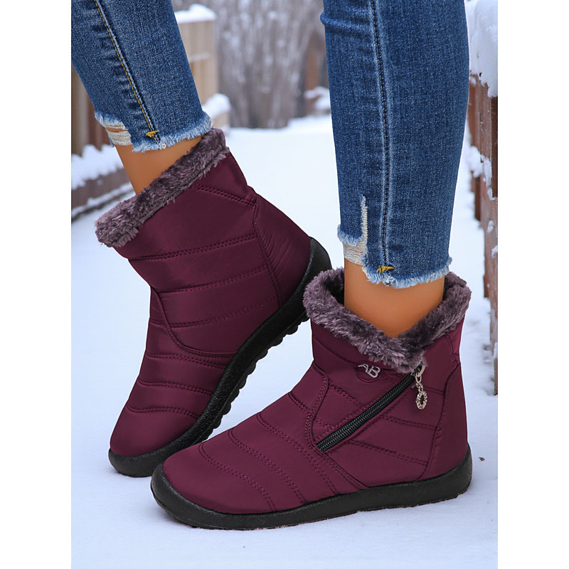 Women's Warm Winter Snow Boots with Faux Fur Lining and Side Zipper, Anti-Slip Waterproof Ankle Boots for Outdoor Wear