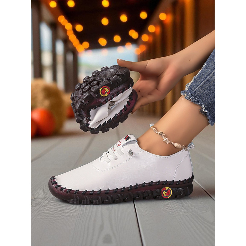 Women's Red Soft Faux Leather Loafers – Flexible Slip-On Comfort Walking Shoes for Casual Outings, Travel and Weekend Shopping