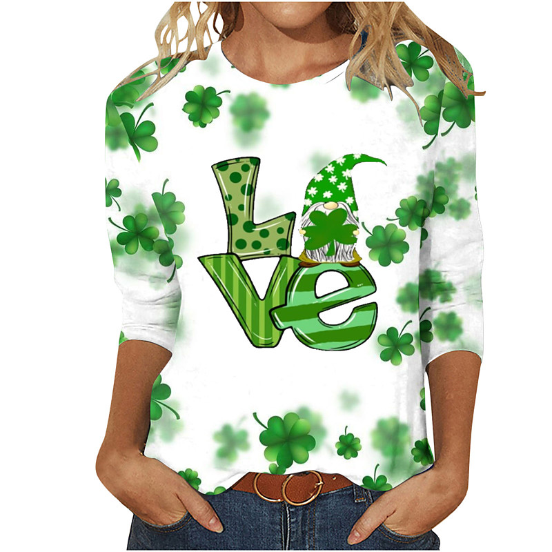 St. Patrick's Day Women's Lucky T Shirt Shamrock Fashion Long Sleeve Round Neck Regular Tops Casual Print Grass Green White Light Green Dark Green Green Spring Fall