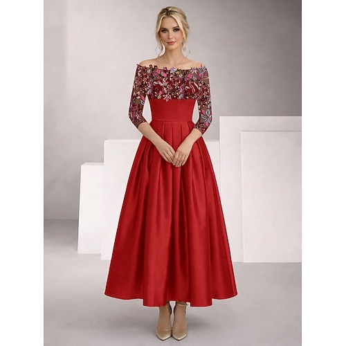 Linea ad A Lunghezza alla caviglia Vestito da Festa Abito da Cocktail Abito da invitata a nozze Abito da cerimonia per signora Manica 3/4 Collo gioiello Elegante Taglie Forti Ospite di nozze