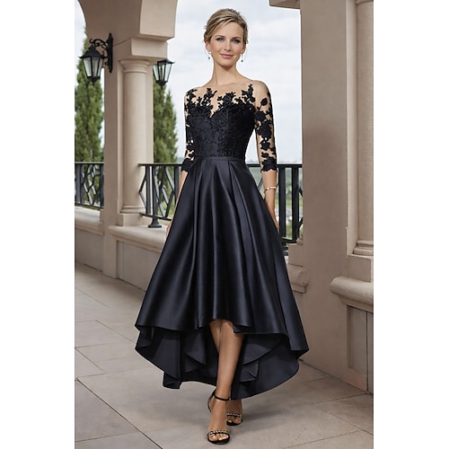 Linea ad A Asimmetrico Lunghezza Tè Vestito da Festa Abito da Cocktail Abito da invitata a nozze Abito da cerimonia per signora Manica 3/4 Scollo Tondo Elegante Alto Basso Ospite di nozze Compleanno