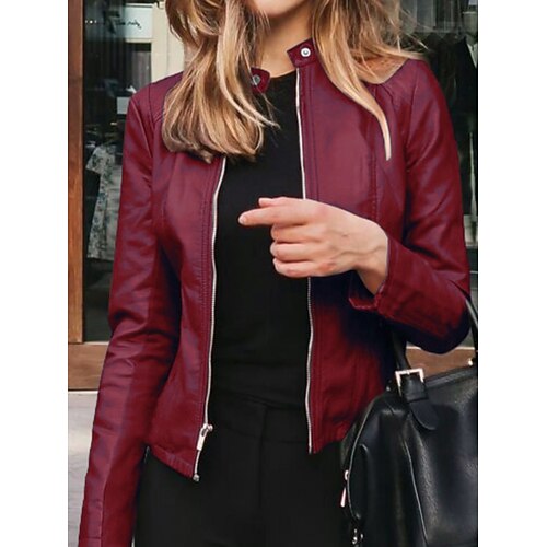 Damen Kunstlederjacke Freizeitjacke Bequem Atmungsaktiv Reißverschluss Lässig Einfach Lässig Urlaub Straße Alltagskleidung Reisverschluss Kurz Stehkragen Normale Passform Langarm Oberbekleidung Blau