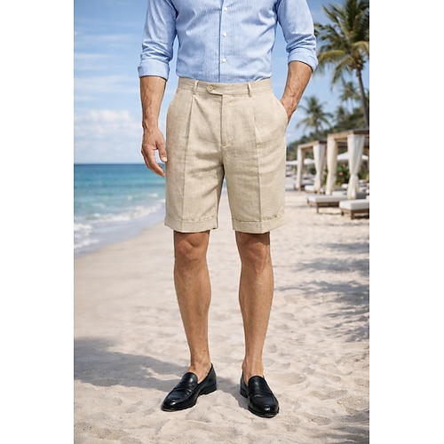 Herren Baumwolle Leinen Freizeithose Sommershorts Täglich Strand Urlaub Leicht Lässig Salbei Beige Sommer Hosen Einfarbig Normale Passform Kurz Unelastisch
