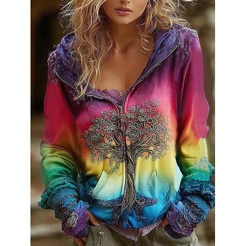 Felpa con cappuccio vintage boho stampata in 3D da donna felpa a patchwork floreale zip up floreale punk attiva vintage maniche lunghe con cappuccio top regolari abbigliamento quotidiano casual