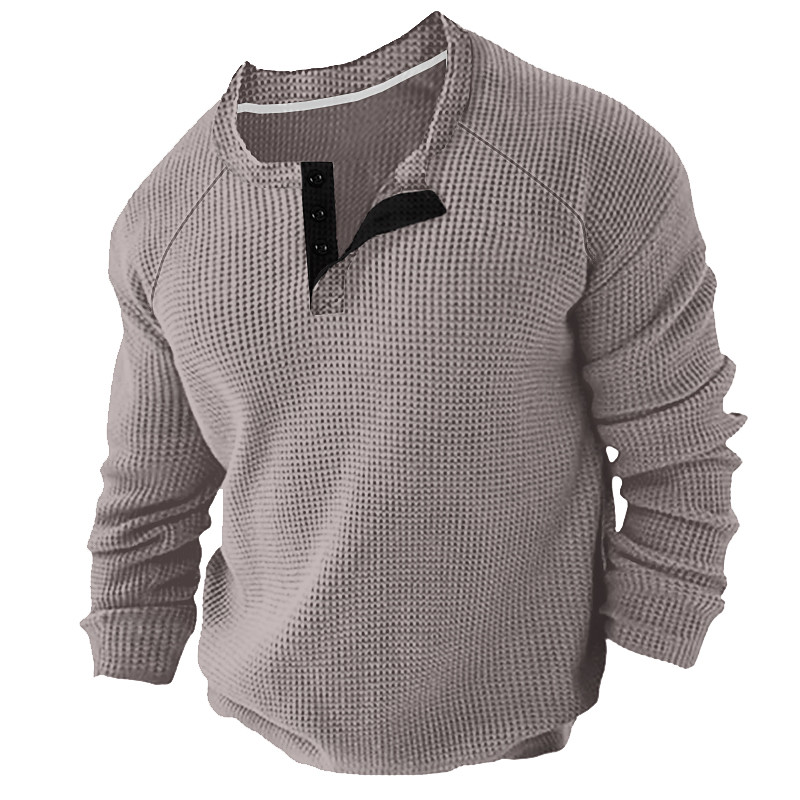 Men's Waffle Henley Shirt Henley Shirt Tee Long Sleeve Shirt Plain Henley Sports WorkWear Long Sleeve Button-Down Clothing Apparel Fashion Streetwear Casual