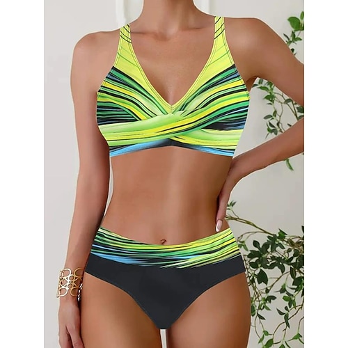 Per donna Costumi da bagno Bikini 2 pezzi Slip brasiliano Costume da bagno Schiena scoperta Taglia piccola Festività Abbigliamento mare Color Block A V Senza maniche Costumi da bagno