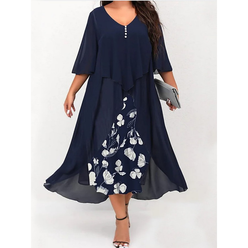 Women's Plus Size Casual Dress Floral V Neck 3/4 Length Sleeve Spring Fall Elegant Fashion Modern Casual Midi Dress Daily Holiday Dress