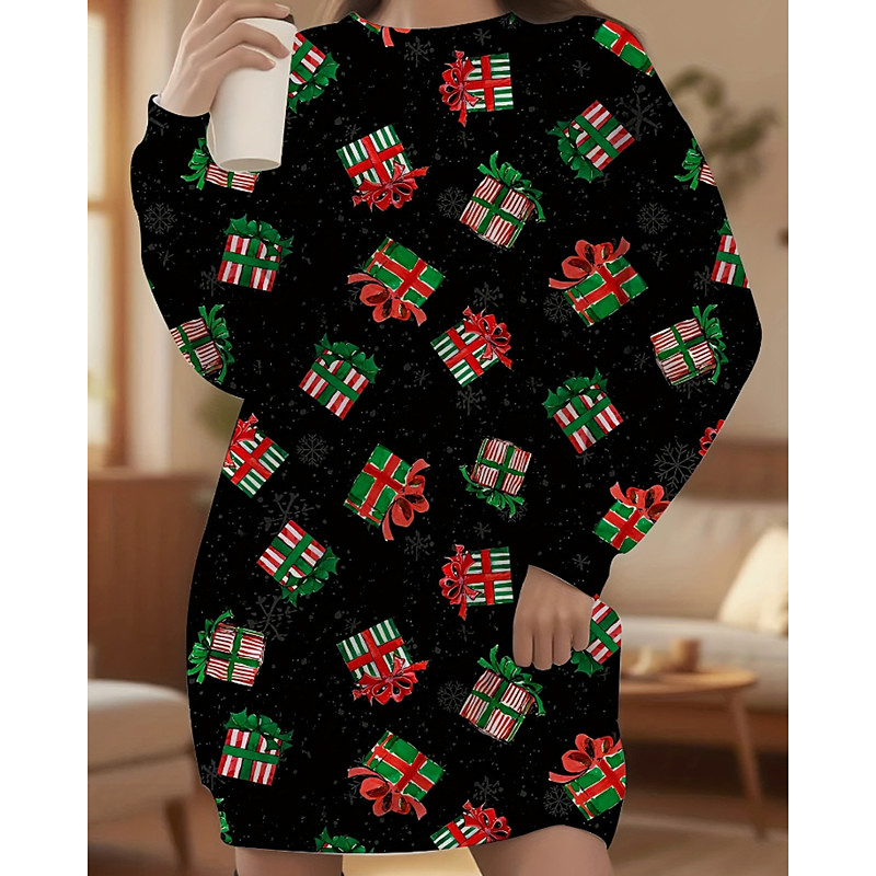 Women's Mini Dress Christmas Dress Hoodie Dress T Shirt Dress Tee Dress Modern Christmas Holiday Going out Regular Fit Floral Tree Long Sleeve Crew Neck Black Green Spring Fall Winter