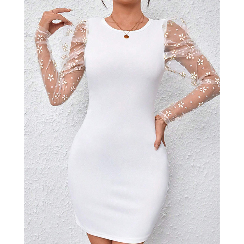 Women's White Dress Party Dress Feather Dress Feather Crew Neck Long Sleeve Midi Dress Winter Dress Wedding Guest Black White Summer Spring