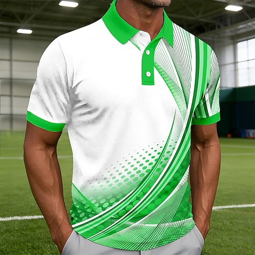 Herren Geometrisch Linie Poloshirts Kurzarm Polo-Shirts Hemden mit Kragen Lässig Athleisure 3D-Druck Knöpfe Frühling Sommer Blau Rote Purpur