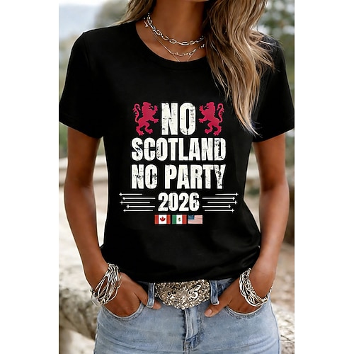 Per donna Maglietta Stampato Grafico Squadra di calcio Elegante Classico Casual Manica Corta Girocollo Top Regolari Quotidiano Nero Rosa Blu marino Verde Estate Primavera