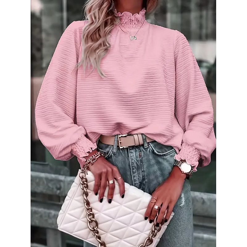 Shirt Blouse Women's Black White Pink Solid / Plain Color Puff Sleeve Daily Fashion High Neck Regular Fit S
