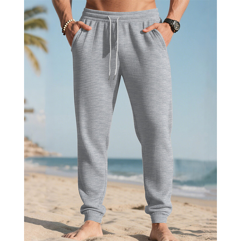 Men's Linen Pants Trousers Summer Pants Beach Pants Drawstring Pocket Elastic Waist Plain Daily Streetwear Fashion Casual Black White