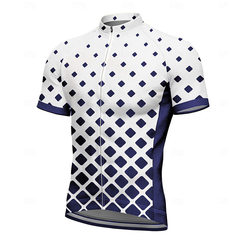 Men's Cycling Jersey Geometric Short Sleeve Bike Tee Tshirt Jersey with 3 Rear Pockets Mountain Bike MTB Quick Dry Anatomic Design Wicking Breathable Sports Dark Navy Blue Sky Blue Clothing Apparel