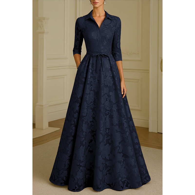 A-Line Floor Length Wedding Guest Dress Formal Dresses Evening Gown Mother of the Bride Dress 3/4 Length Sleeve Shirt Collar Elegant Formal Holiday Birthday Satin with Bow(s)