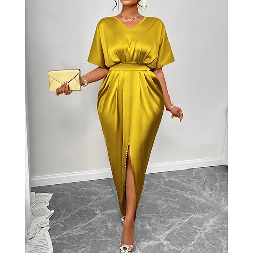 Per donna Abito Lungo Maxi Abito Abito in Raso Vestito da Festa Abito da Cocktail Elegante Moderno Festa serale Feste Vestibilità regolare Semplice Manica Corta Scollo a V Nero Giallo Blu Reale Verde