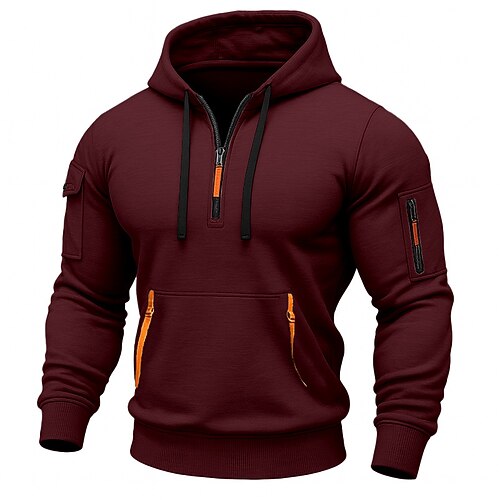 Per uomo Felpa con cappuccio Felpa con cappuccio e zip corta Nero Bianco Vino Blu marino Blu Reale Con Cappuccio Semplice Con zip Tasca Frontale Tattico Sport Outdoor Casuale Streetwear Cool