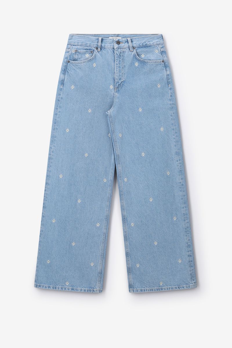 Blauwe High Rise Wide Leg Jeans Met Bloemen