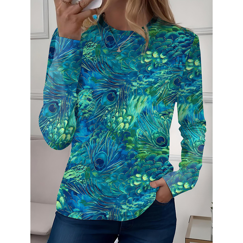 Women's T shirt Long Sleeve Crew Neck Long Sleeve Tunic Floral Casual Regular Tops Daily Print Sage Green Pink Blue Sky Blue Purple Spring Fall Prefall