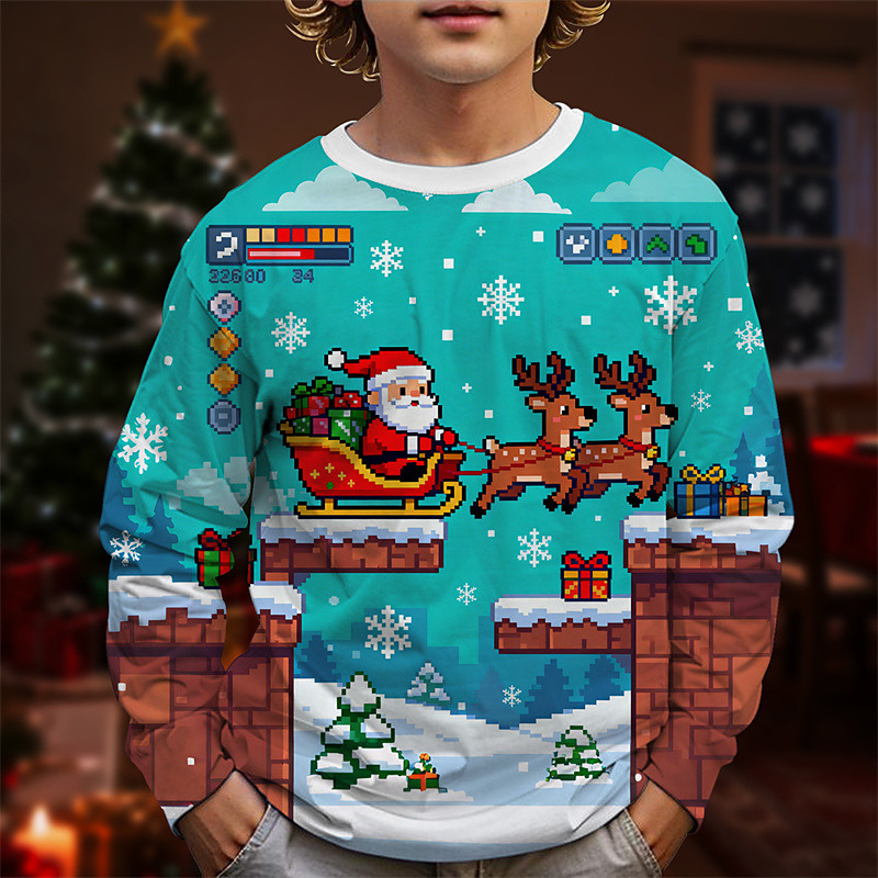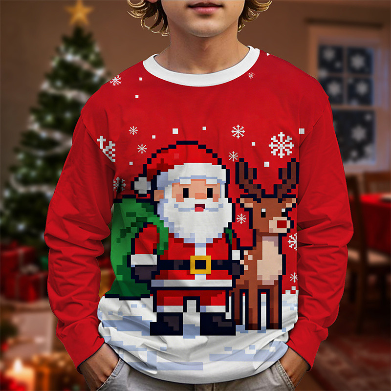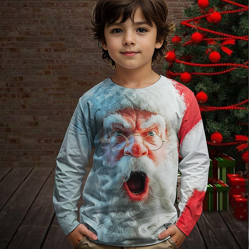 Christmas Boys' 3D Graphic Santa Claus T shirt Tee Long Sleeve Spring Fall Fashion Basic Kids 4-12 Years Crew Neck Outdoor Casual Daily Regular Fit