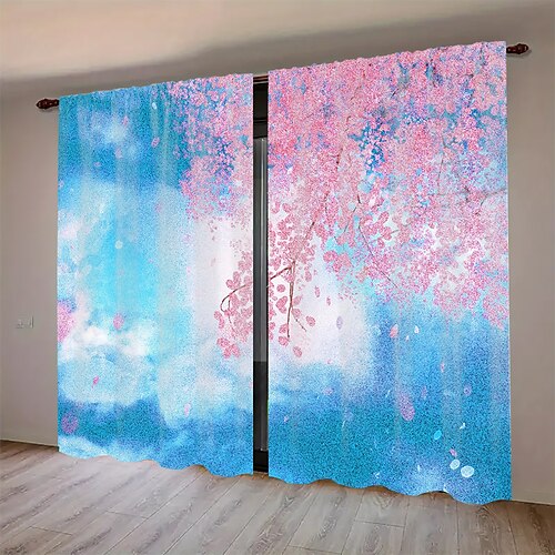 2 tende con stampa floreale e vegetale, tende in poliestere con passante per asta, tende con stampa botanica verde per soggiorno, camera da letto, cucina, dormitorio, decorazione per la casa.