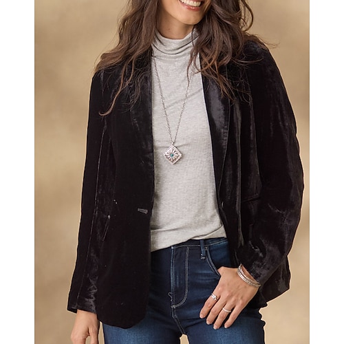Per donna Blazer Blazer di velluto Confortevole Tasca Bottoni Moda Semplice Feste Festa / Sera Evento / Festa Regolare Collo ripiegato Vestibilità regolare Manica Lunga Capispalla Viola scuro Nero