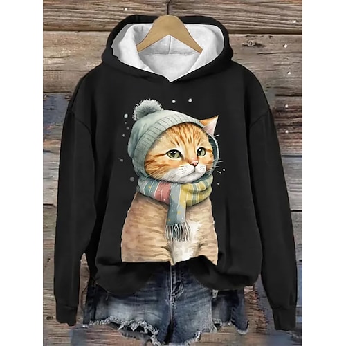 Per donna Felpa con cappuccio Grafico Animale Casual Manica Lunga Scollo a V Con Cappuccio Top Regolari Abbigliamento da sera Streetwear Abbigliamento Quotidiano Blu Nero Bianco Rosa Primavera