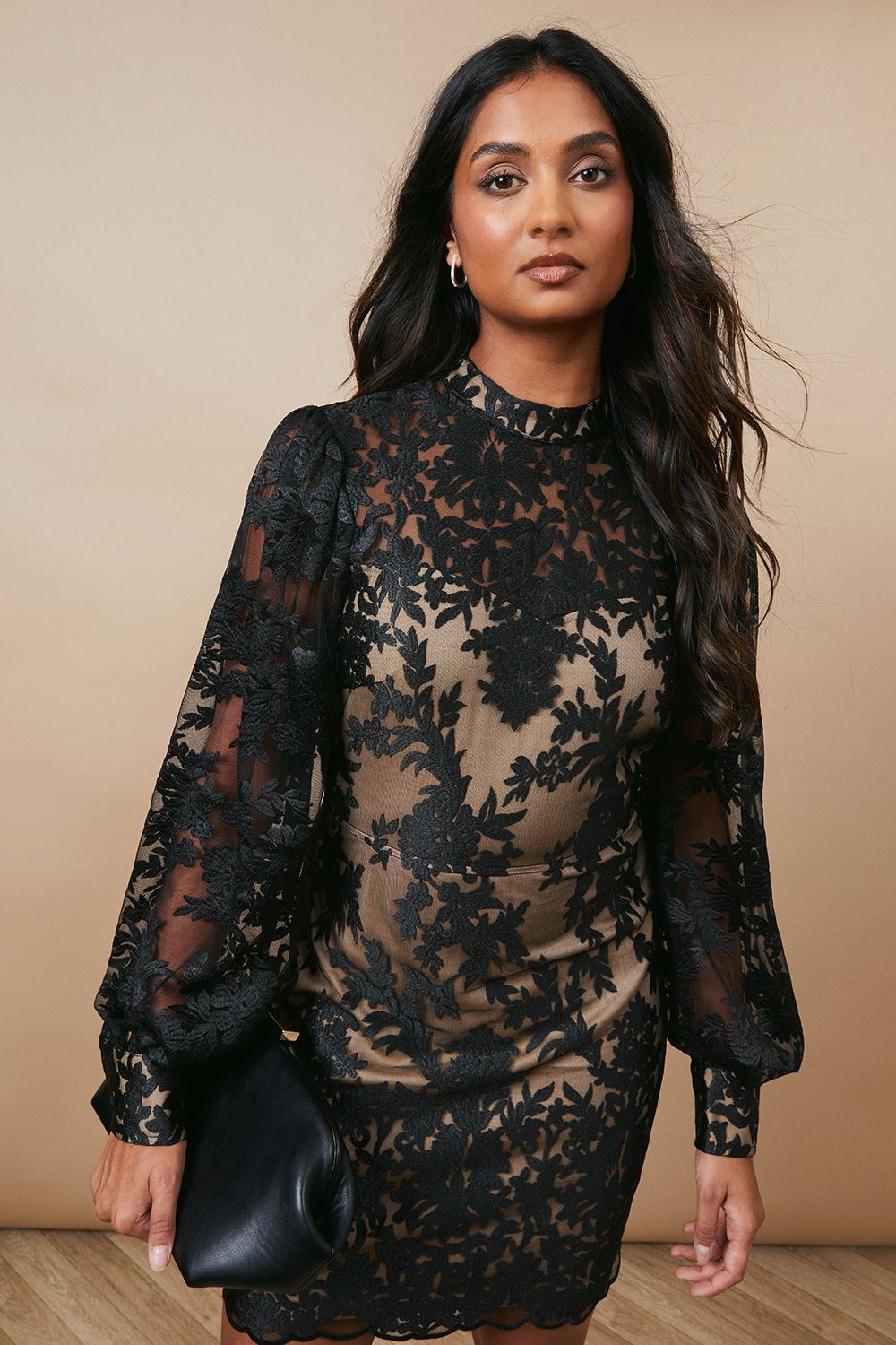 Oasis Womens Embroidered Mesh Sweetheart Neck Mini Dress - Black - Size 14 UK | Oasis Sale | Discount Designer Brands