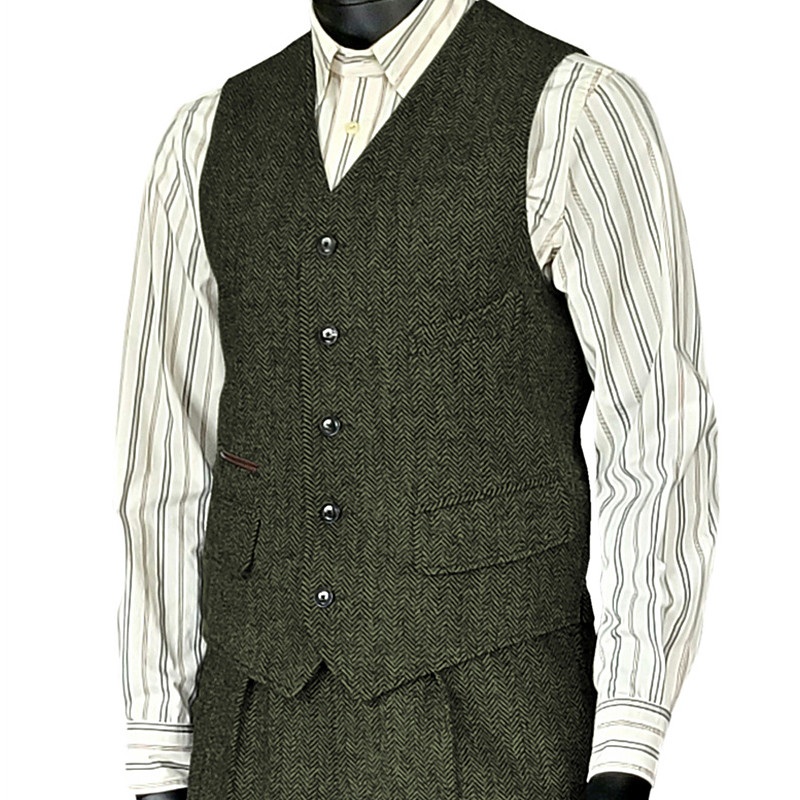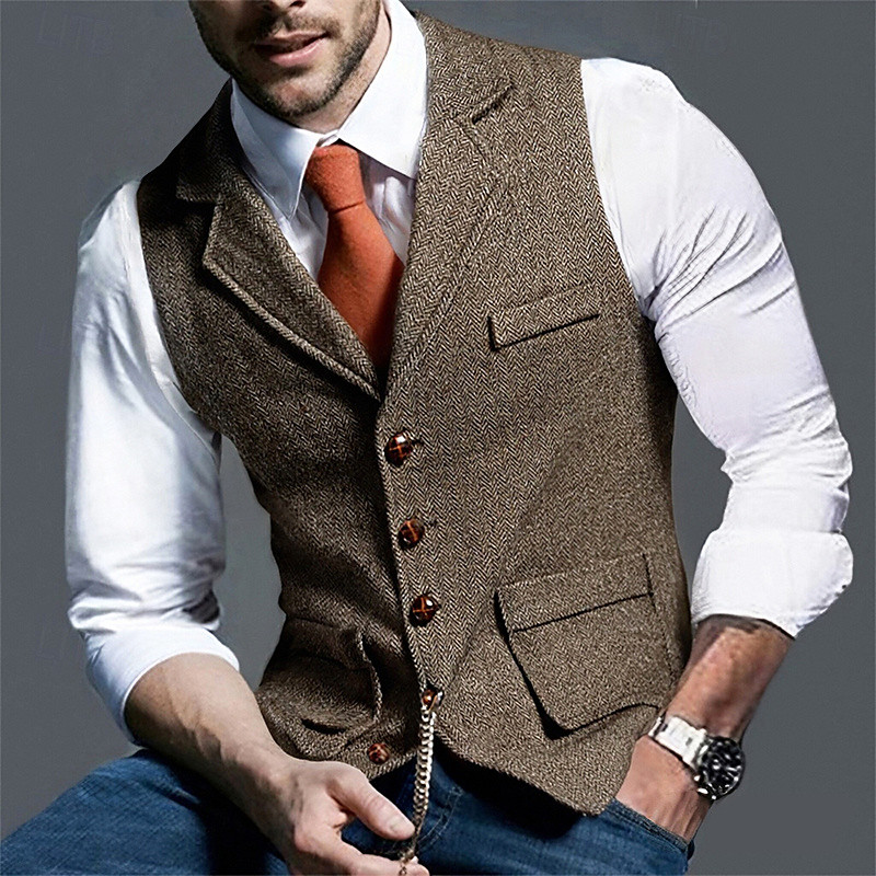 Men's Vest Tweed Vest Waistcoat Formal Wedding Vacation Casual Fashion Classic Spring Fall Pocket Buttons Polyester Woven Comfortable Plaid Single Breasted V Neck Regular Fit Black Champagne Navy