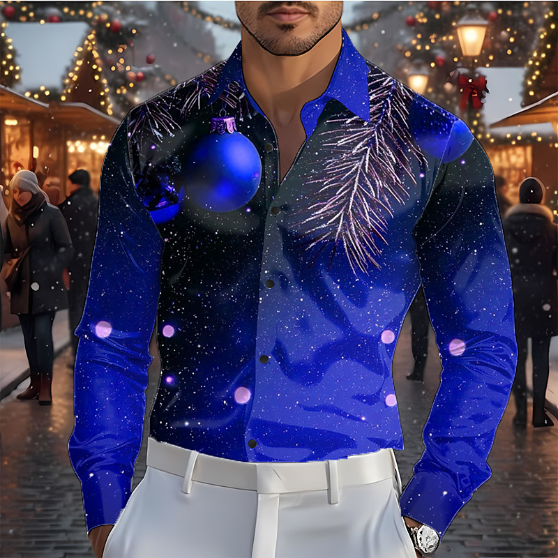 Christmas Men's Gradient Color Christmas Light Christmas Baubles Shirt Satin Shirt Dress Shirt Long Sleeve Fashion Casual Party Holiday Spring Fall Turndown 3D Print Button Up Shirts Red Blue